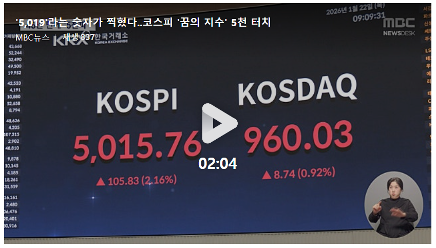 2026년 1월 22일, 대한민국 주식 시장에 역사적 순간이 찾아왔습니다.