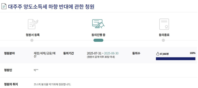 7월 31일 이후 이어진 논의 속에서 8만 명이 넘는 투자자가 국회 전자청원에 참여하며