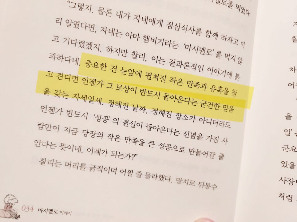 여러분들은 혹시 마시멜로 이야기란 책을 읽어보셨나요?