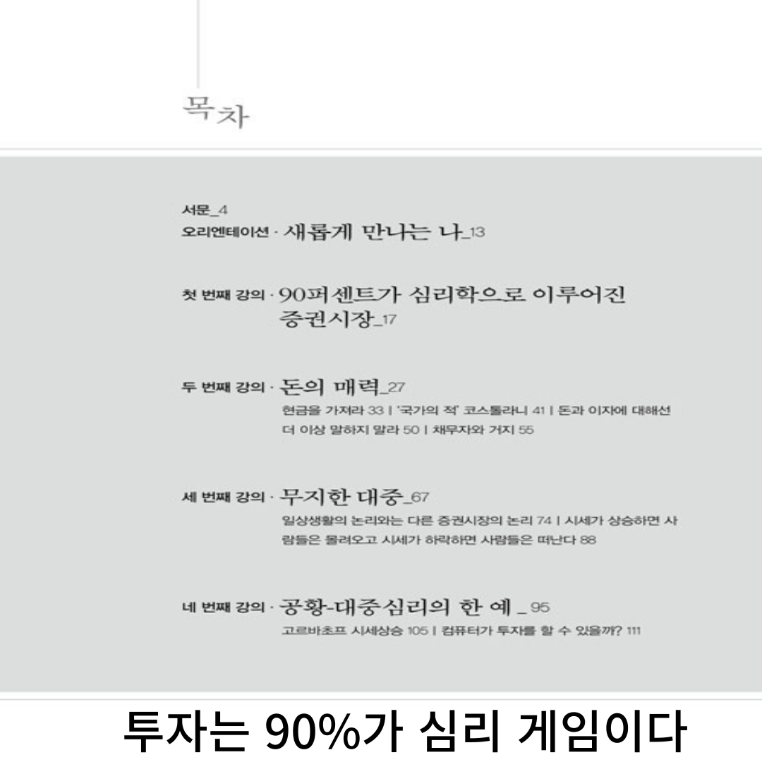 | 핵심 메시지 | 주식은 숫자가 아닌, 사람들의 감정이 움직인다 |
