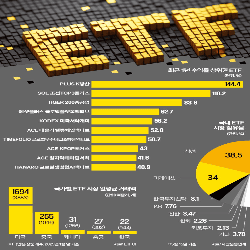 최근에는 미국 기술주, 방위산업, 인공지능(AI), 인도시장, 심지어 팰런티어 같은 개별 종목 중심 테마형 ETF까지 다양하게 출시되고 있다.