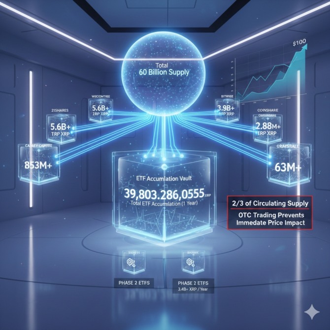 그가 제시한 모델에 따르면 ETF들은 장외거래(OTC)를 통해 조용히 XRP를 매집하고 있으며, 이는 현물 시장 가격에 직접적인 영향 없이 공급을 줄이는 구조로 이어집니다. 결국 공급이 고갈되면 가격은 자연스럽게 급등할 수밖에 없다는 것이 그의 주장입니다.